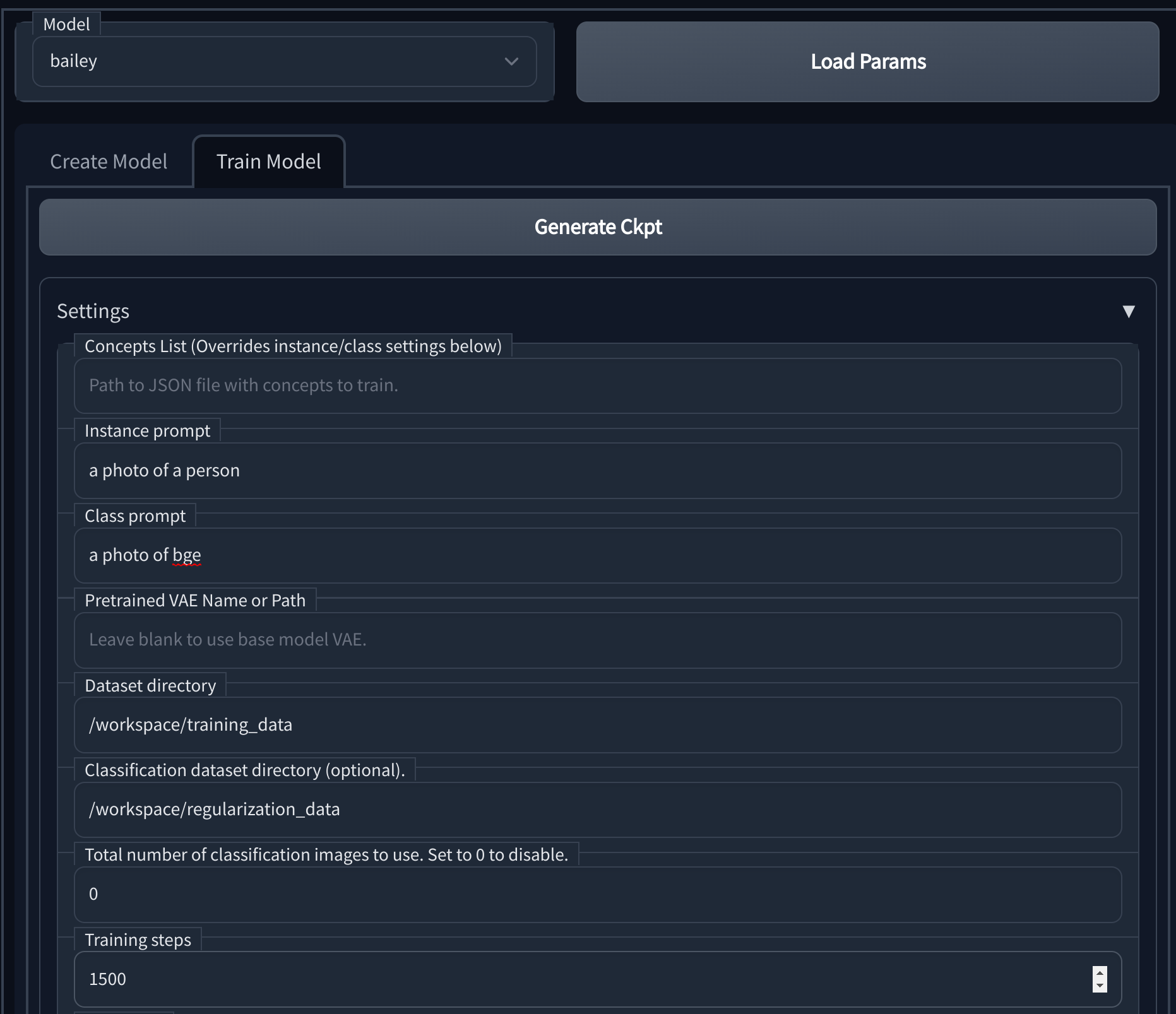 - Training Images - These should be images of the thing you want to train on, for example if you want to teach your model abouta a new person, this should be pictures of that person (more details below)